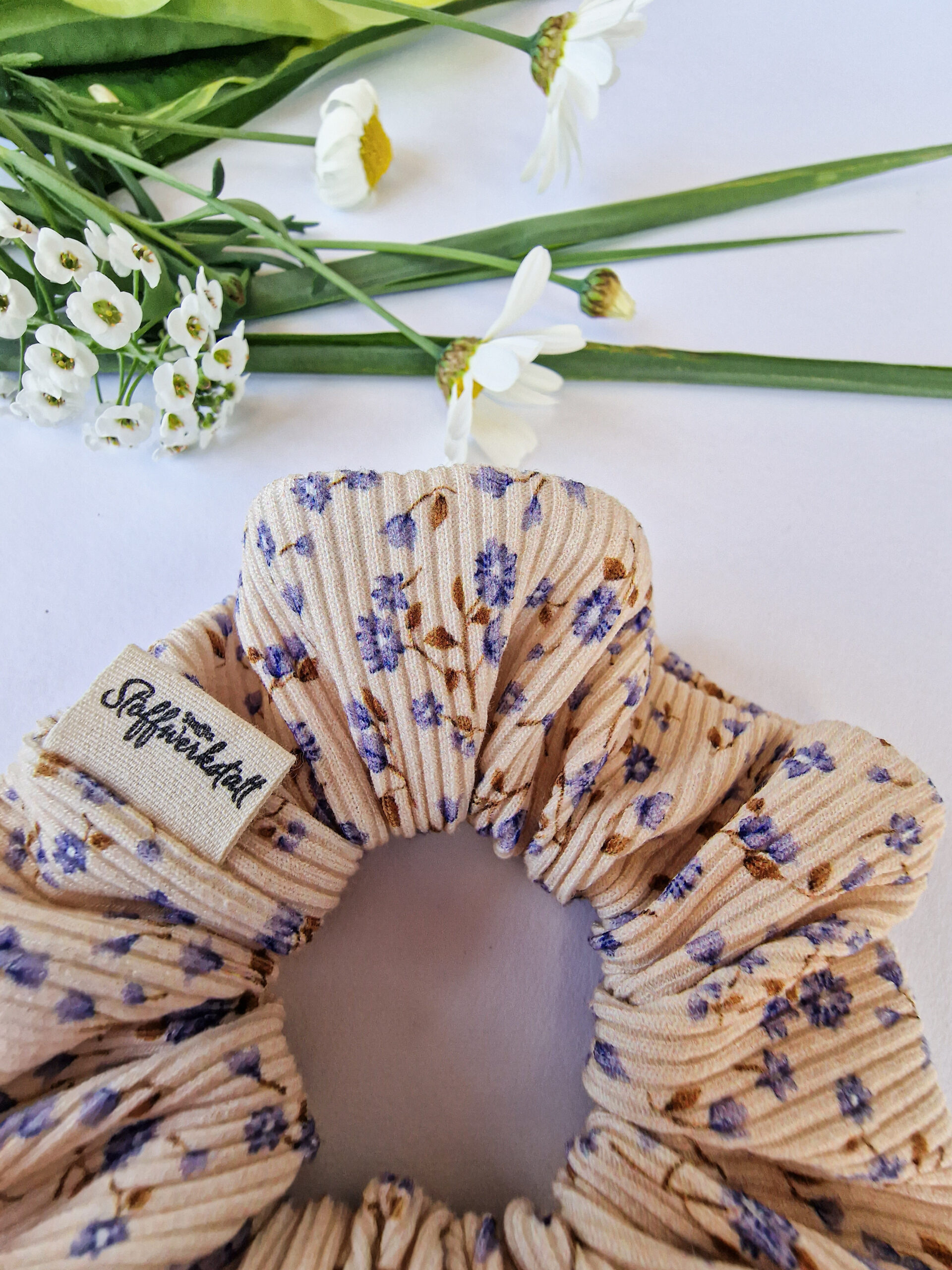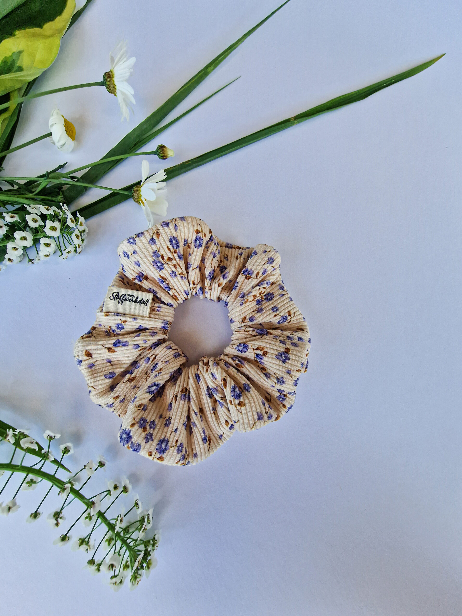 Scrunchie Ripp „mini Blumen blau“